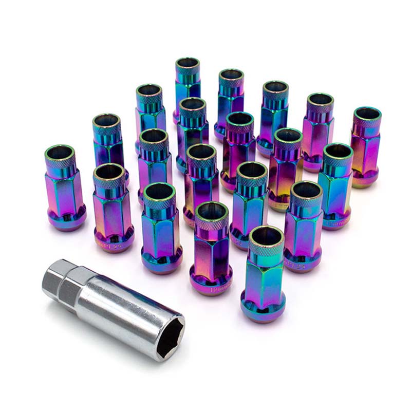 Каждая гайка крепления колеса с открытым концом M12x1,5 выкована из стали 50BV30. По сравнению с обычными гайками из углеродистой стали ее ударопрочность увеличена примерно на 20%. Конструкция со сквозными отверстиями обеспечивает гибкую установку на удлиненные колесные болты, что особенно подходит для модифицированных автомобилей с замененными толстыми шайбами или длинными болтами гоночного класса.