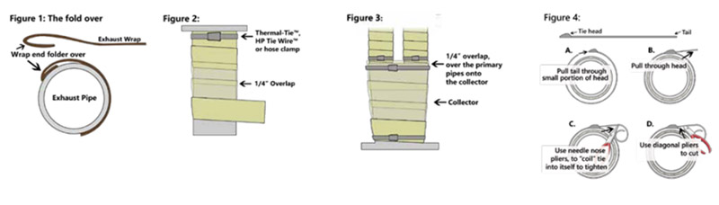 3. Начните с складывания конец выхлопной обертки на 3/4 ”~ 1”. Убедитесь, что вы подтащили конец сгиба подвыхлопная оберткаи поместите на трубу. Это уменьшает поток на конце обертки. (Рисунок 1)